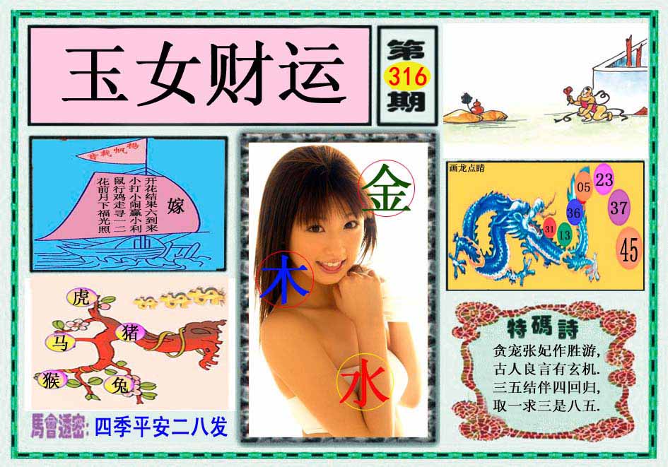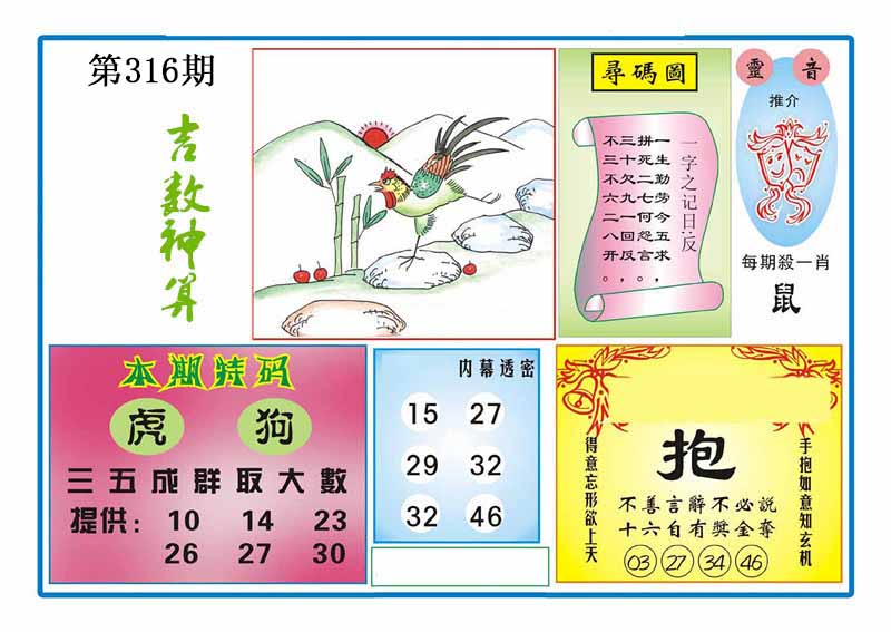 315期必中⑤肖: 鼠鸡兔牛蛇 |