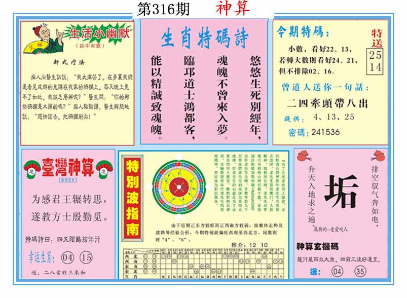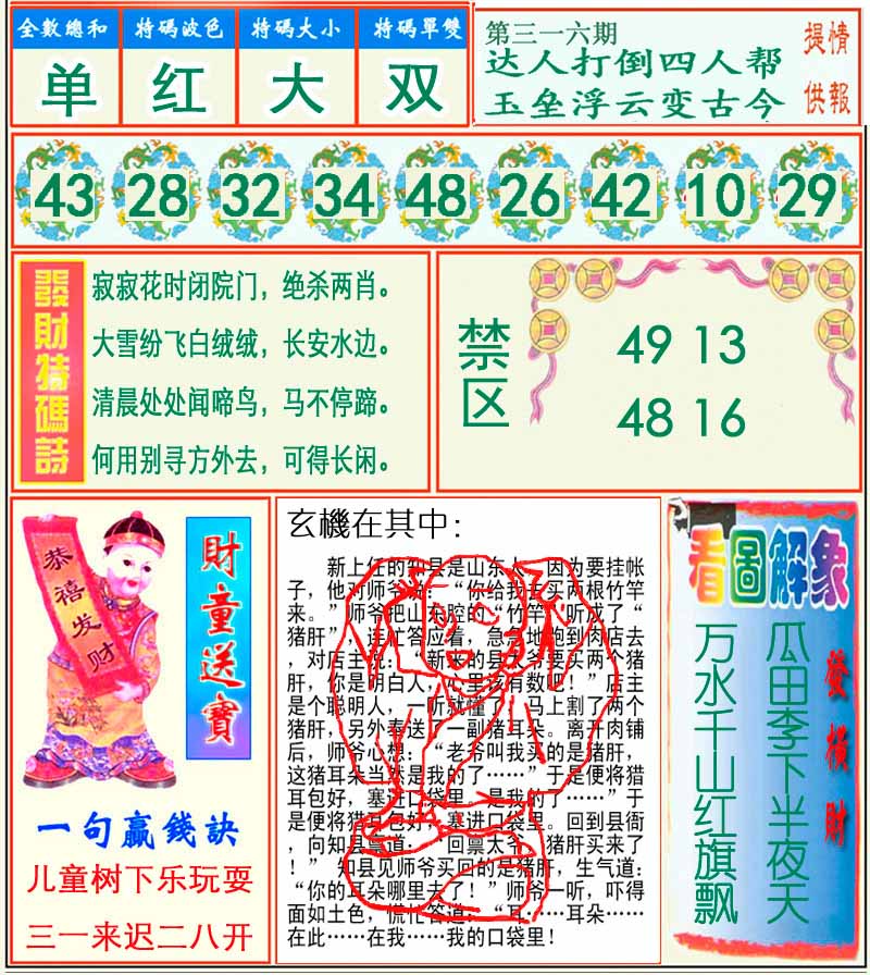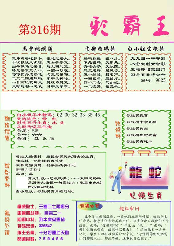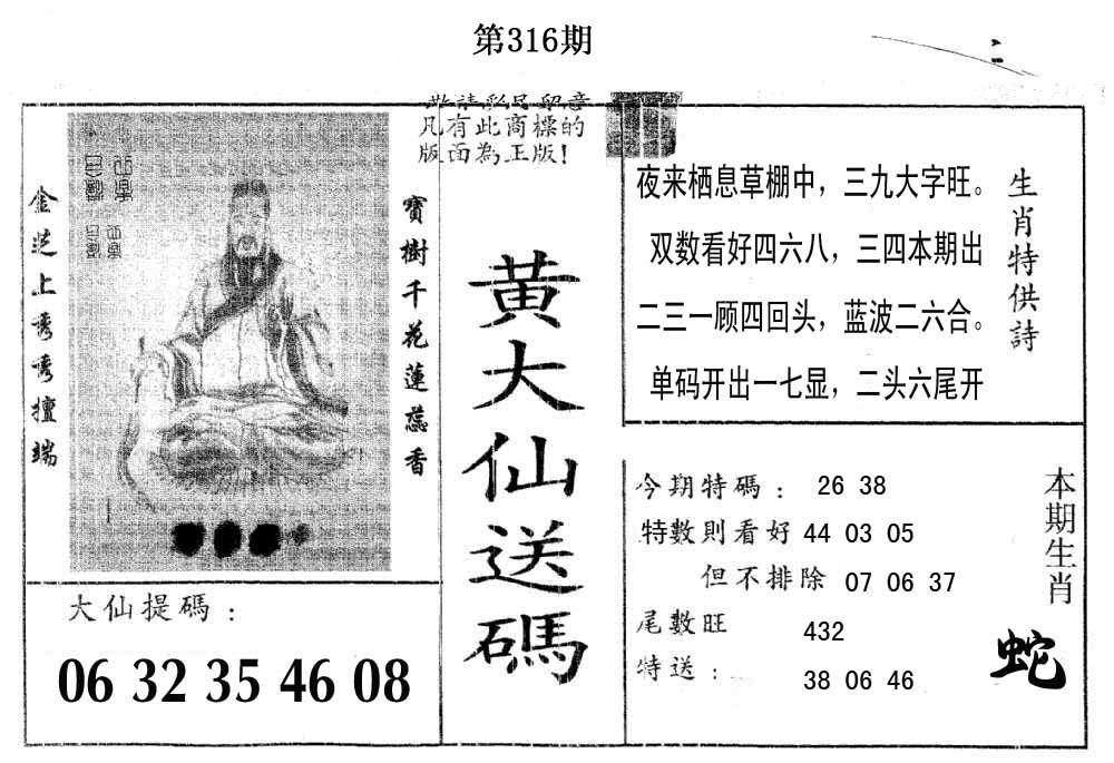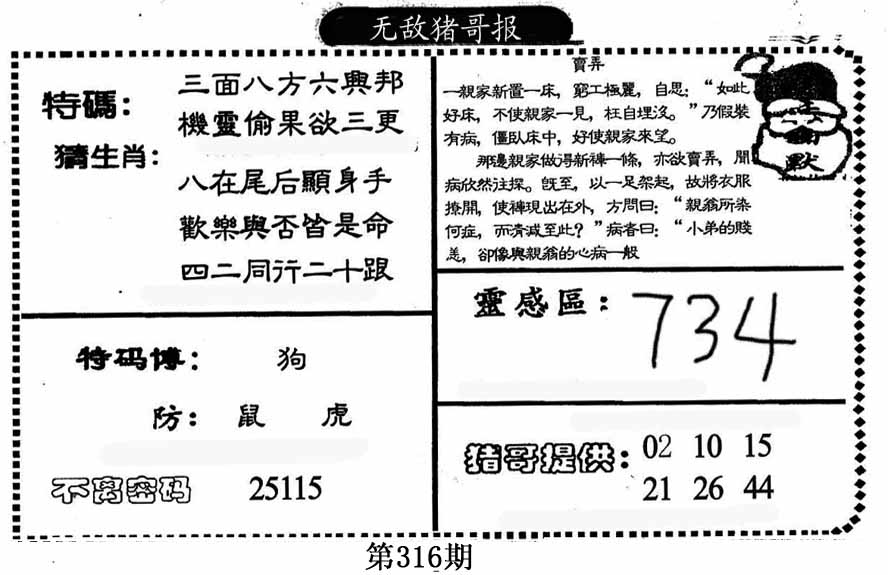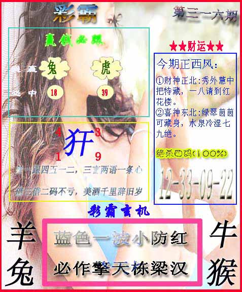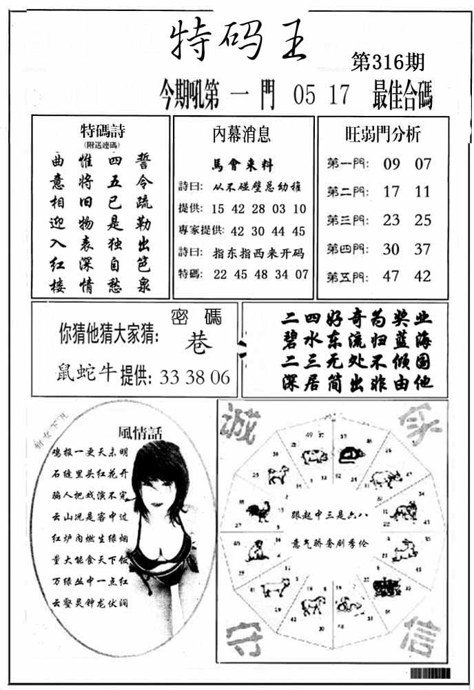 316期必中⑤肖: 蛇狗猪羊鸡 |